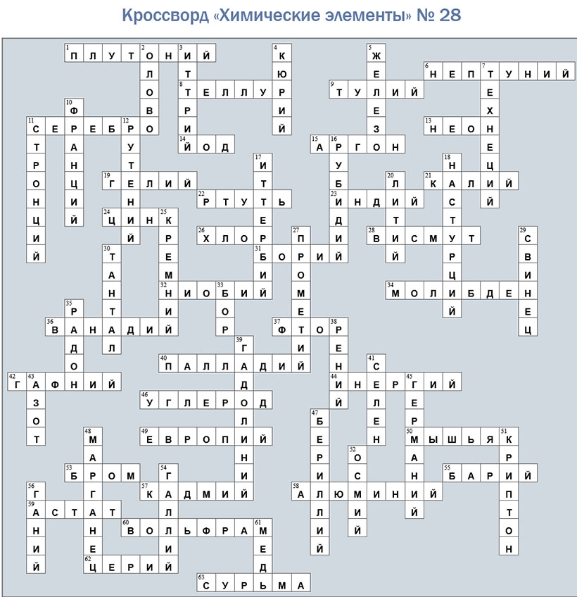 Погрузитесь в удивительный мир периодической системы с нашим новым кроссвордом! Разгадайте, какой элемент дал имя ночным огням Лас-Вегаса, а какой был предсказан великим Менделеевым? Знаете ли вы металл, который плавится от тепла руки, или самый плотный элемент на планете? Вас ждут вопросы о ядах и лекарствах, редкоземельных «обитателях» шведской деревни, элементах, открытых на Солнце раньше, чем на Земле, и веществах, определивших ход мировой истории. Этот кроссворд проверит не только знание школьной химии, но и вашу эрудицию в области истории науки, технологий и даже искусства. Готовы ли вы разгадать тайны атомов и созвездие элементов? Увлекательной игры и блестящих открытий!