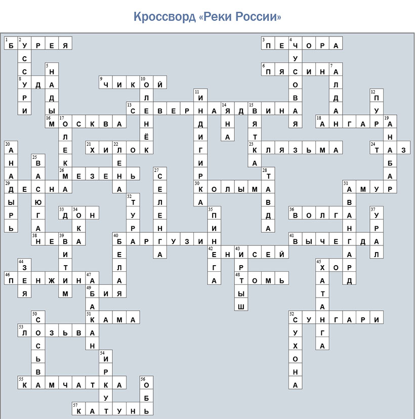Метки: кроссворд, кроссворд онлайн, реки России, география России, природа России