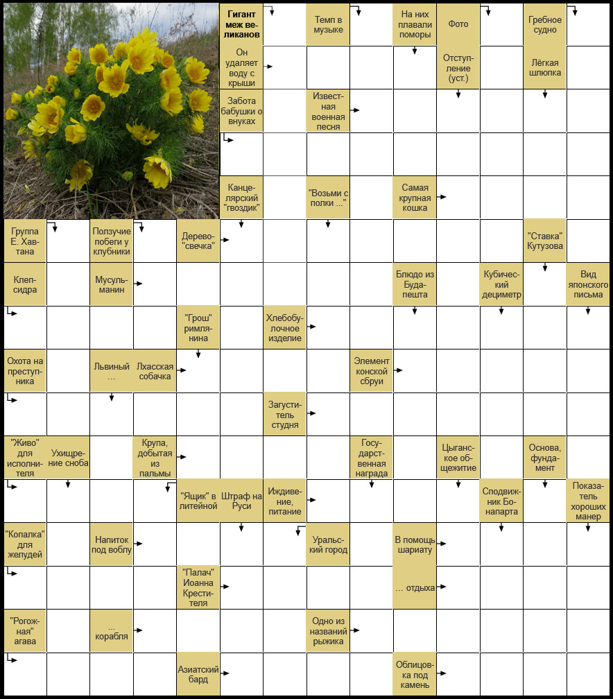 Разгадывай — и пусть весенний горицвет осветит все тёмные клетки этого сканворда. ☀️